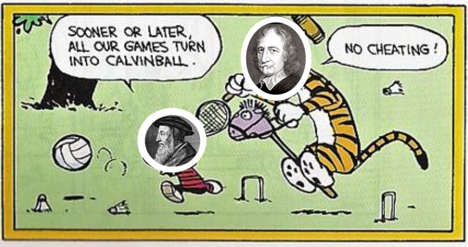 CALVIN: The reformer John Calvin taught that man is totally depraved. Give one man all the power, and they will always become a tyrant. Hence all power ought to be decentralized. Thus “Calvin” roughly represents the ideals of a generalized political right.